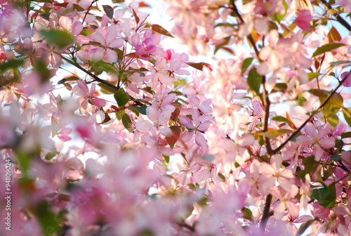 Obraz premium Обильное цветение яблони розовыми цветками