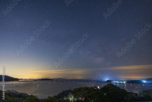 © 仁 藤原, Fototapeta premium 日本の岡山県の瀬戸内海に浮かぶ美しい星空