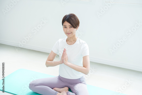 Fototapeta premium ヨガをするミドル女性