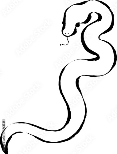 Fototapeta premium 巳年、年賀素材、筆タッチのヘビのイラスト