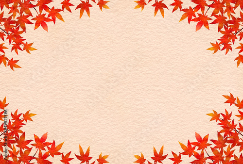 Obraz premium 紅葉 秋 和風 和紙 素材 水彩画 飾り 枠 紅葉狩り 落ち葉 行楽 秋祭り 文化祭 お彼岸 キャンペーン シンプル 囲み 見出し タイトル ポストカード ポスター