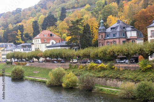 Obraz premium 秋のハイデルベルクの街並みとネッカー川