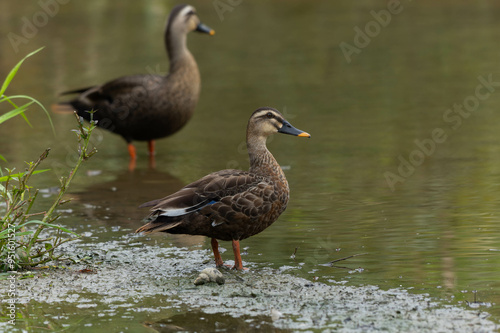 Fototapeta premium 沼の畔のカルガモ