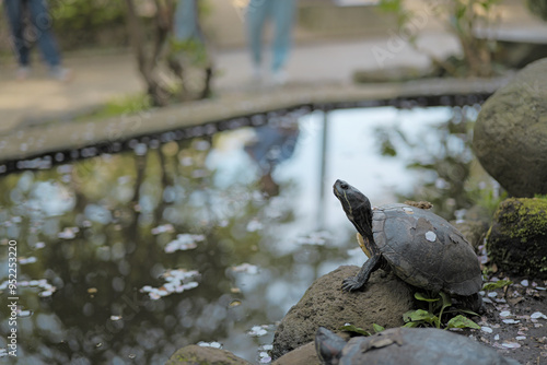 © YUUUSAN, Fototapeta premium 甲羅に桜のついた亀