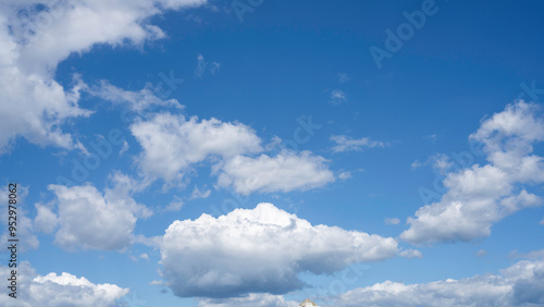 © sephoto, Obraz premium 하얀 구름이 떠 있는 파란 가을 하늘
