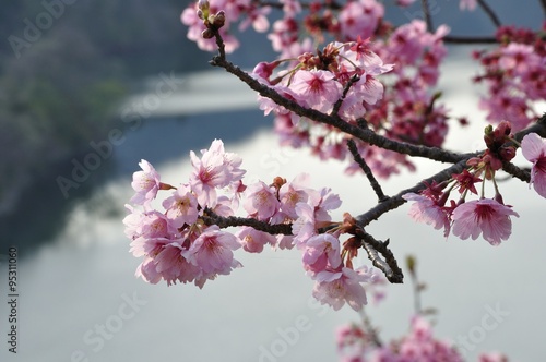 Obraz premium 湖畔に咲く桜