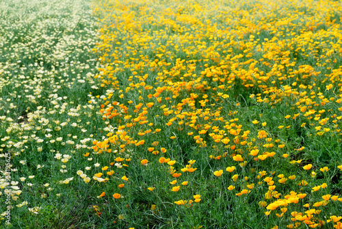 Obraz premium 一面に広がる白と黄色の花々