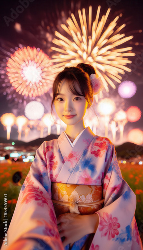 © dalb, Fototapeta premium 花火大会の浴衣の女性