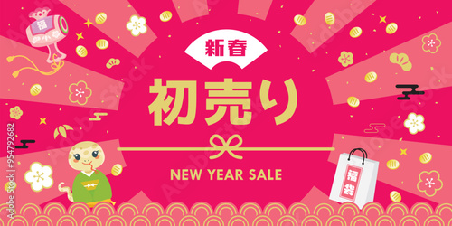 Fototapeta premium 巳年の初売りセールの背景イラスト