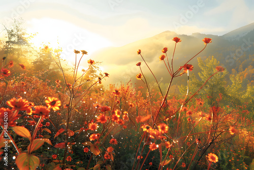 © dadakko, Obraz premium 秋の風景。 森の朝日と紅葉