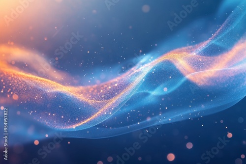 © 炳伟 梁, Obraz premium 曲线粒子波纹弯曲线条点线科技背景