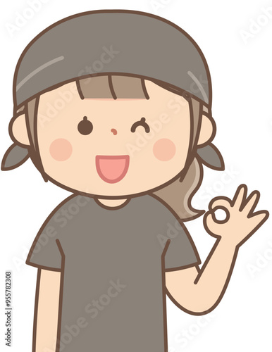 © ミミクリ, Obraz premium オッケーのポーズをする飲食店の女性