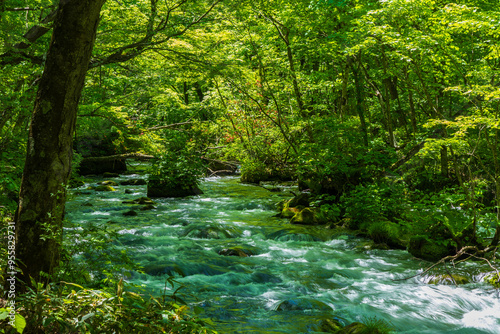 © Yuta1127, Fototapeta premium 日本の風景・春 青森県十和田市 新緑の奥入瀬渓流 三乱の流れ