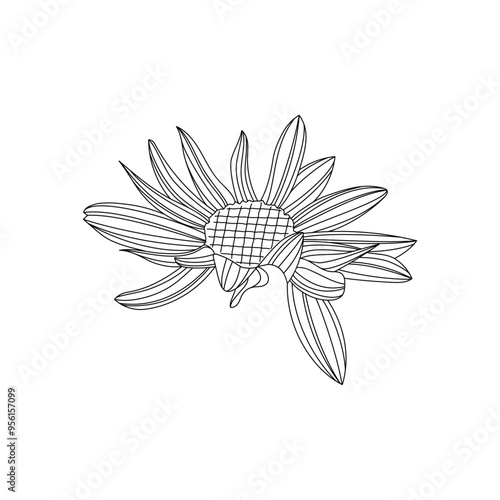 © NoriOri_R_eorika, Obraz premium ひまわりの線画イラスト