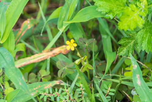 Fototapeta premium 草むらの中に咲く小さな黄色い花