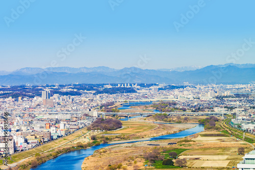 © show999, Fototapeta premium 多摩川 の 河川敷 は 東京都 と 神奈川県 の 都県境 【 首都圏 の 河川 】