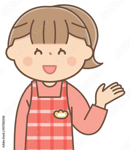 © ミミクリ, Obraz premium 案内をする保育士の女性