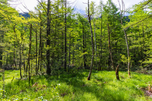 Obraz premium 日本の風景・初夏 長野 新緑の上高地 田代湿原