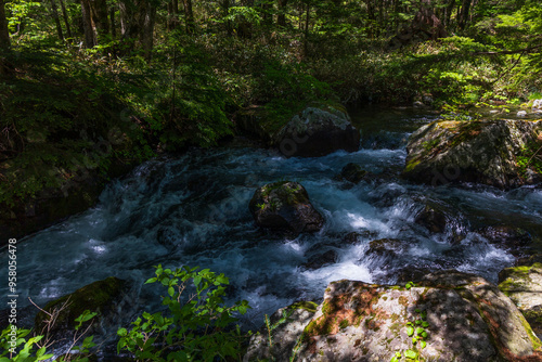 © Yuta1127, Obraz premium 日本の風景・初夏 長野 新緑の上高地 明神池