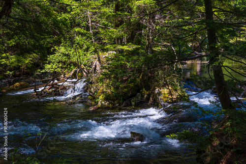 © Yuta1127, Obraz premium 日本の風景・初夏 長野 新緑の上高地 明神池