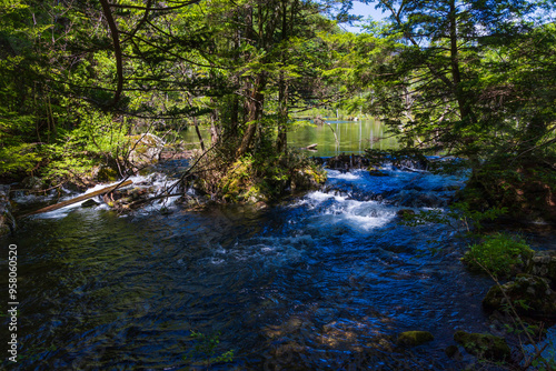 © Yuta1127, Obraz premium 日本の風景・初夏 長野 新緑の上高地 明神池