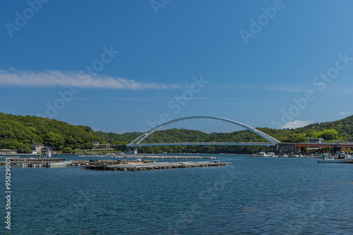 © pespiero, Naklejka premium 日本 三重県鳥羽市の生浦湾に架かる麻生の浦大橋