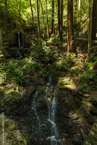 © pespiero, Obraz premium 三重県志摩市磯部町にある天の岩戸を流れる小川と境内の風景