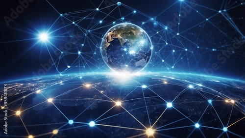 Obraz premium グローバルネットワークと通信技術が支えるインターネットビジネスの未来