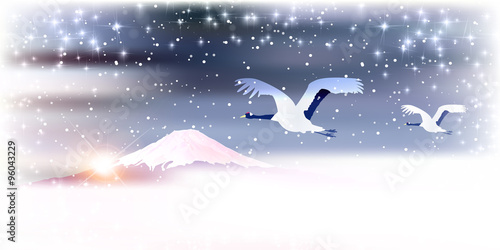 © J BOY, Obraz premium 富士山 日の出 鶴 背景