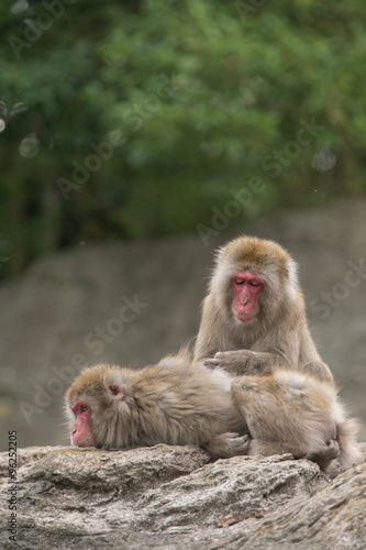 © Yoshinori Okada, Fototapeta premium 毛繕いするニホンザル