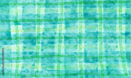 Fototapeta premium エメラルドグリーンの可愛い水彩チェック柄背景
