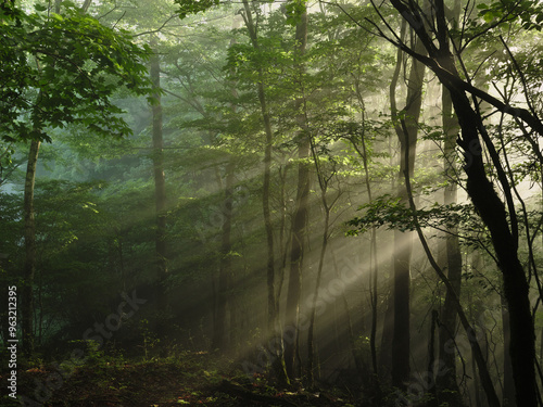© bokotosan, Fototapeta premium 森の中に光が差す