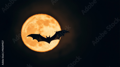 Naklejka premium 満月を飛ぶコウモリのシルエット