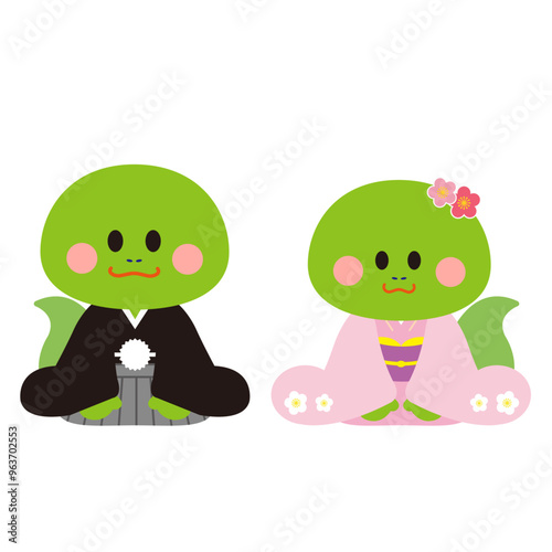 Obraz premium かわいい着物を着て挨拶するヘビのイラスト