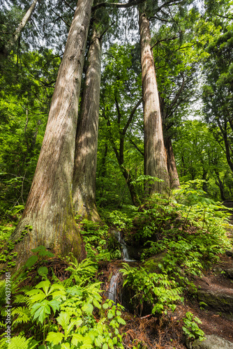 © pespiero, Obraz premium 日本 長野県長野市にある戸隠神社の奥社の参道沿いにある杉の木