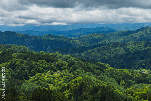 © pespiero, Obraz premium 日本 長野県長野市鬼無里の大望峠から眺める風景