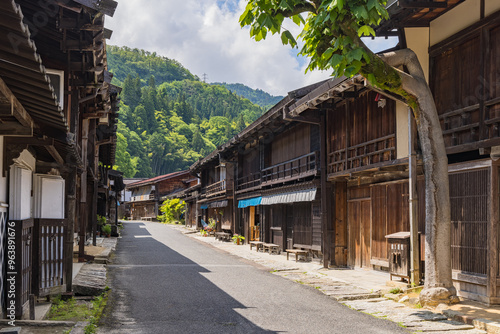 © pespiero, Fototapeta premium 日本 長野県木曽郡南木曽町にある中山道の宿馬町、妻籠宿の寺下の町並み