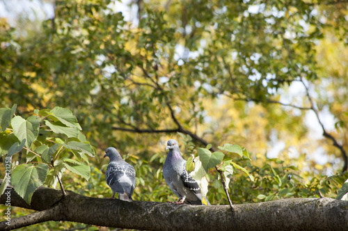 © Blue_bird, Obraz premium 木の枝で休む2羽の鳩