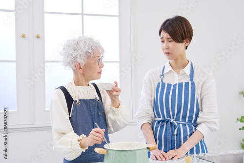 © siro46, Obraz premium 嫁の料理をチェックする姑