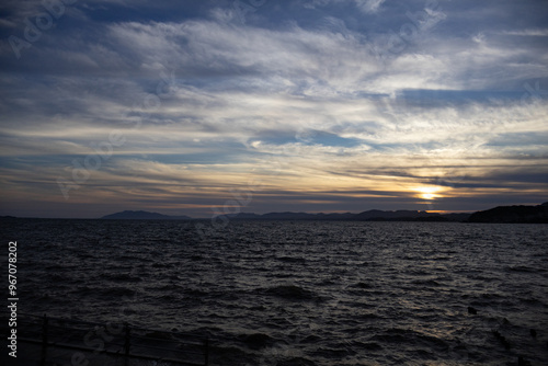 © Mimai Mig, Obraz premium 湖に沈む美しい夕陽