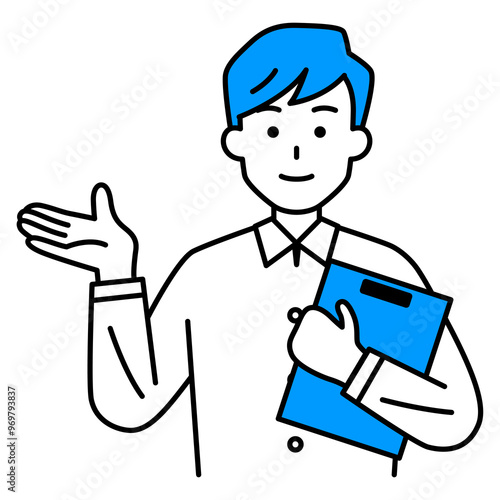 © pawz, Obraz premium クリップボードを持って説明するカジュアルな男性