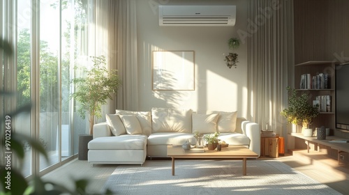 © NOREAL, Naklejka premium エアコンのあるリビング