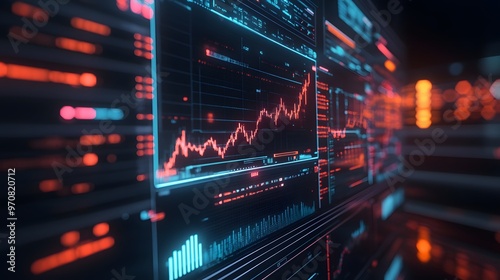 © StudioFF, Fototapeta premium ホログラフィック株価チャート