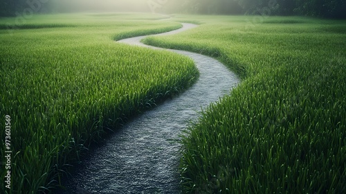 © StudioFF, Obraz premium 緑の芝生の中の曲がりくねった小道
