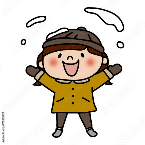 © てがきっず, Obraz premium 雪をなげて遊ぶ子供(女の子)