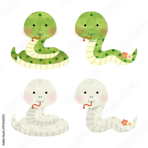© pinoko, Obraz premium 水彩風 蛇のベクターイラストセット