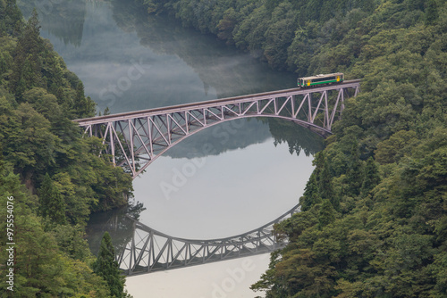 © yasshi_1977, Fototapeta premium 第一只見川橋梁を渡る只見線