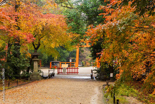 © Yuta1127, Obraz premium 日本の風景・秋 雨の京都 紅葉の糺の森