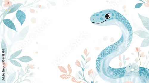 © daejang, Obraz premium 2025년 새해 인사와 귀여운 뱀 일러스트 배경