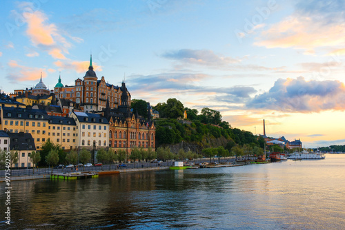 Obraz premium スウェーデン 夕暮れのストックホルム、セーデルマルム島の街並み